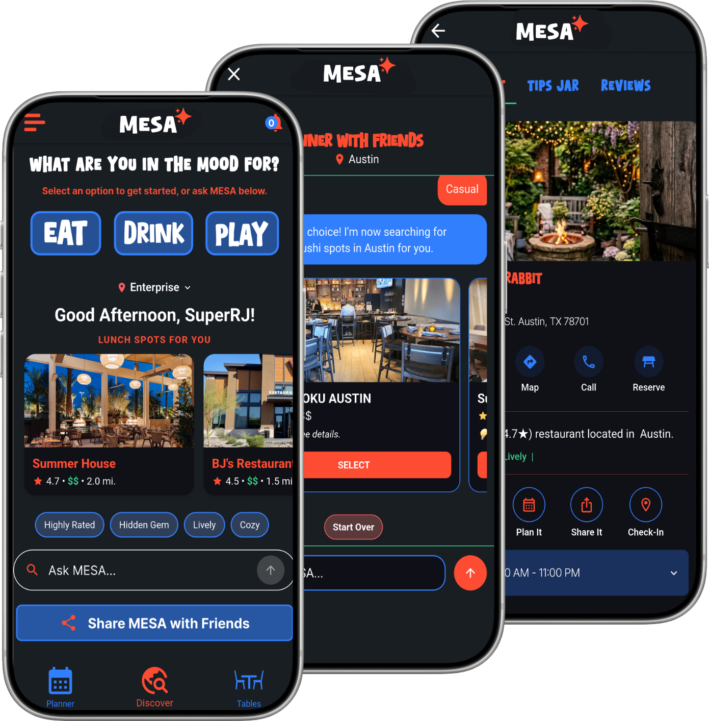 More than an app—it’s your sociable engine. MESA provides a single space to find the venue, make the plan, and invite the crew in seconds, so you can stop planning and start living.